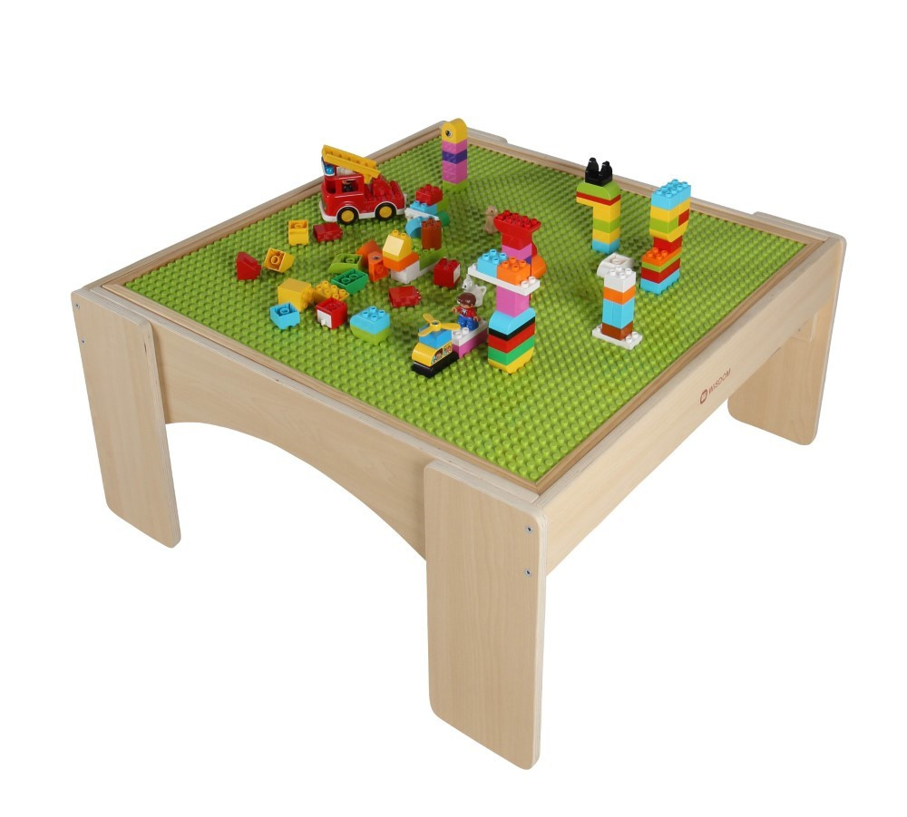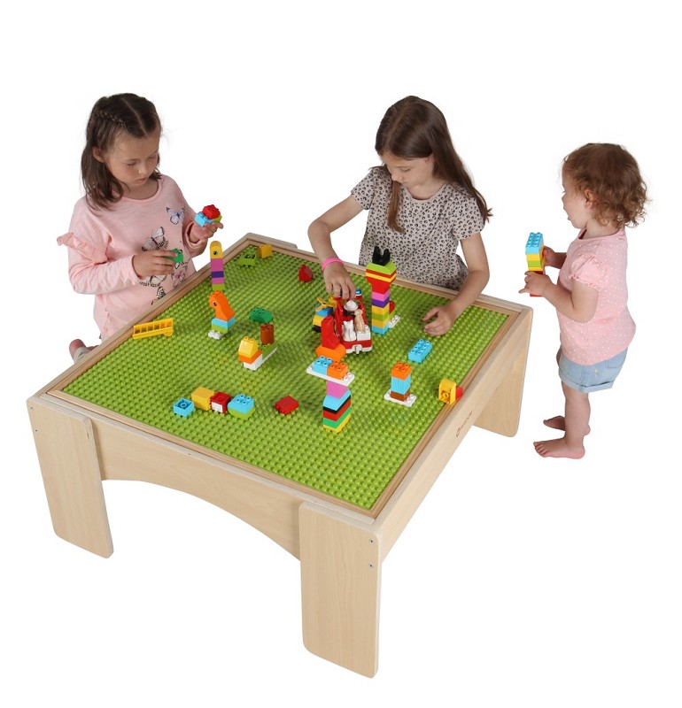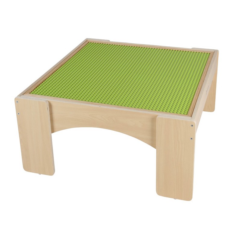 Die Tischoberfläche ist mit einer speziellen genoppten Struktur versehen, die optimal für große Klemmbausteine geeignet ist. Diese Oberfläche sorgt dafür, dass die Steine sicher halten und nicht so leicht verrutschen, was das Bauen noch einfacher und stabiler macht.