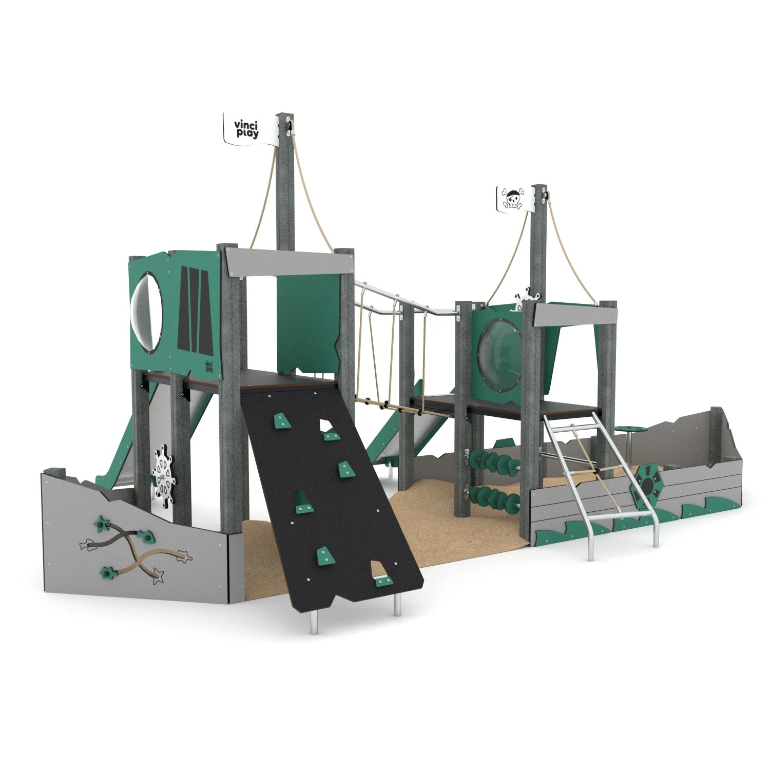 Setzt die Segel für unvergessliche Spielstunden mit unserem fantastischen Spielschiff mit integriertem Sandkasten! Dieses traumhafte Spielgerät bringt das Meer direkt auf den Spielplatz und lässt Kinderherzen höher schlagen.