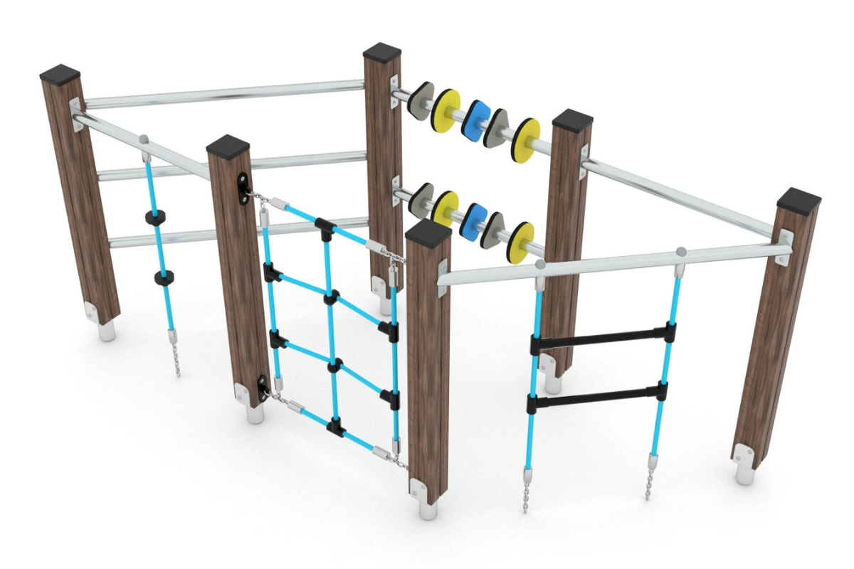 Verschiedene Kletterleitern und Wände mit unterschiedlichen Schwierigkeitsgraden stärken die Muskeln, fördern Konzentration und Gleichgewicht.