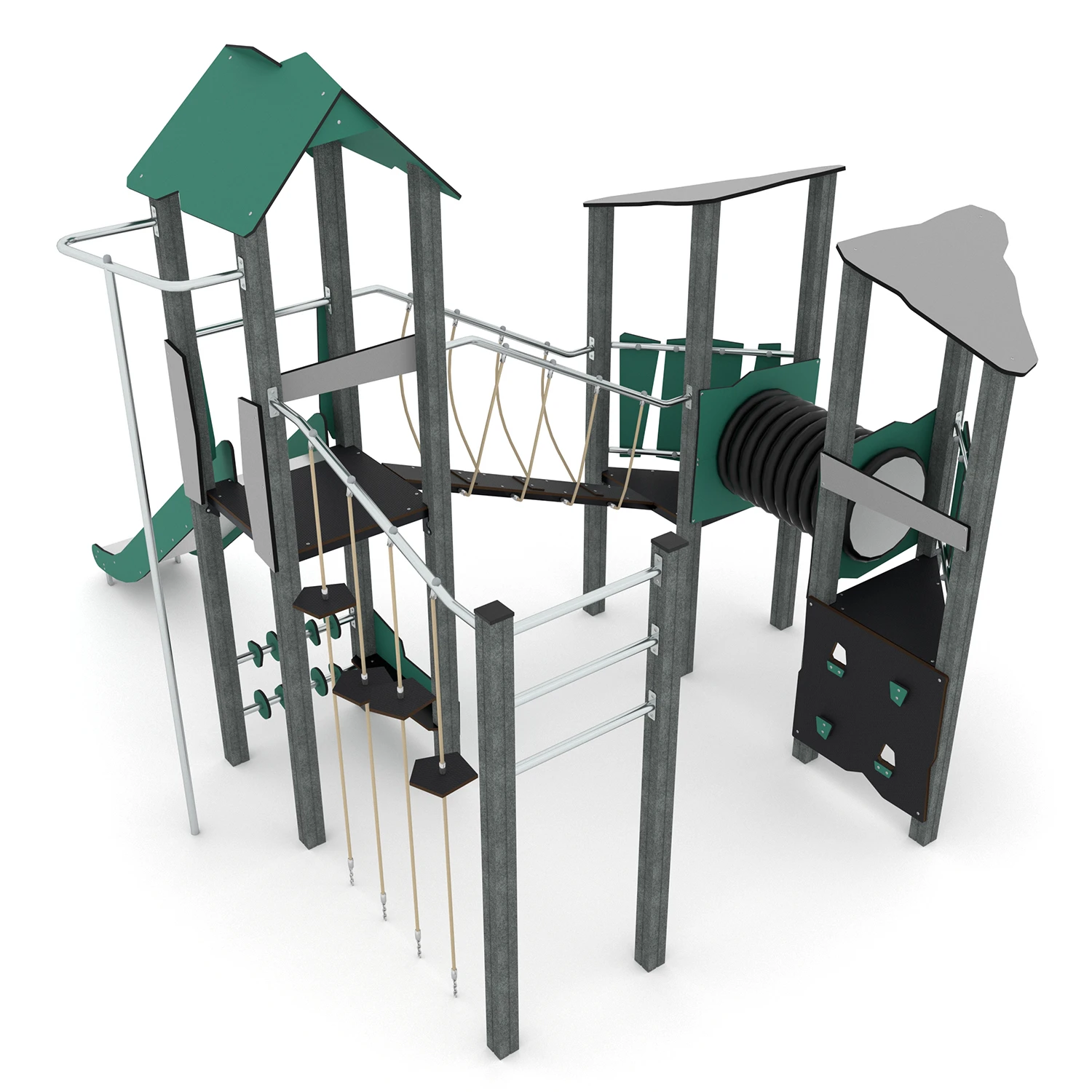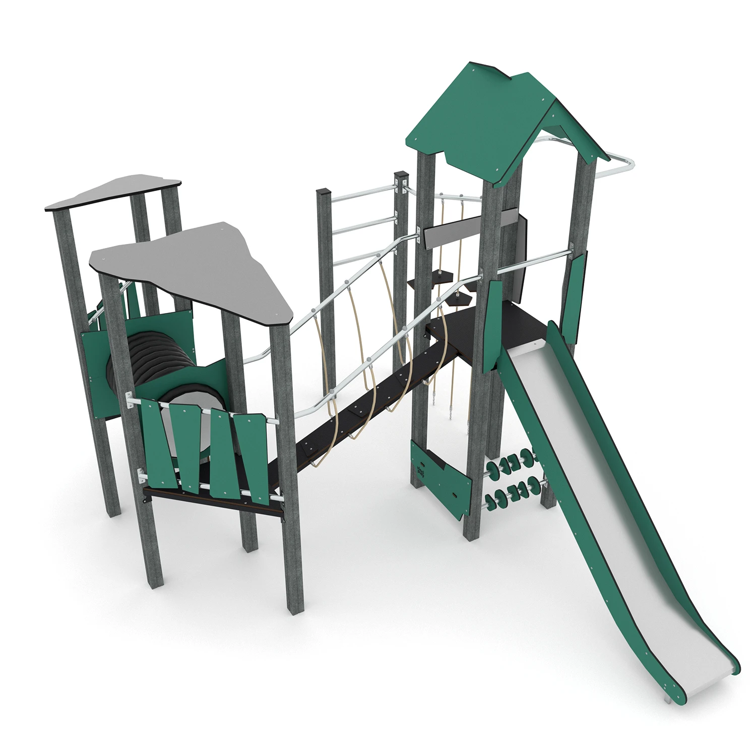Rutschen aus rostfreiem Stahl mit Seiten aus recycelten HDPE-Platten, witterungsbeständig