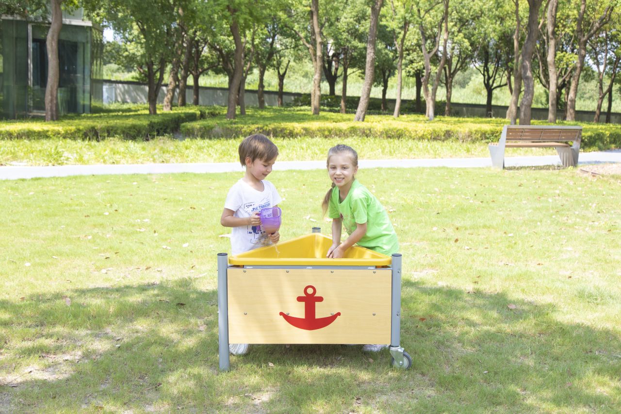 Die Kinder können mit Wasser, Sand und anderen Materialien experimentieren und so ihre Kreativität und sensorischen Fähigkeiten entwickeln. Der Wasserauslauf macht die Reinigung nach einem ereignisreichen Spieltag zum Kinderspiel.