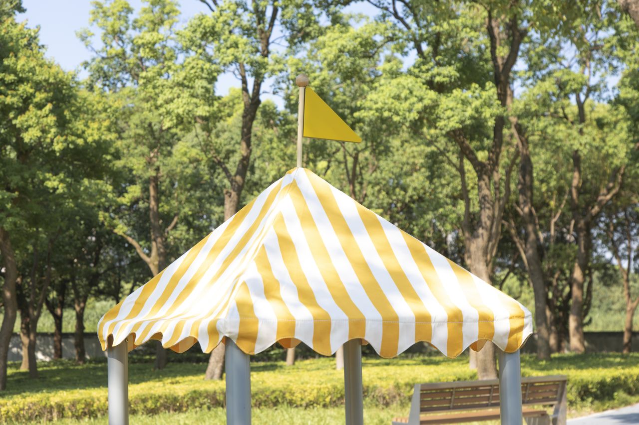 Das Spitzdach ist aus robustem OXFORD-Polyestergewebe gefertigt und verfügt über eine spezielle PU-Beschichtung, die es wasserdicht macht. So sind die Kinder bei jedem Wetter geschützt und können ungestört spielen, ohne dass sie von Regen oder starker Sonneneinstrahlung beeinträchtigt werden.