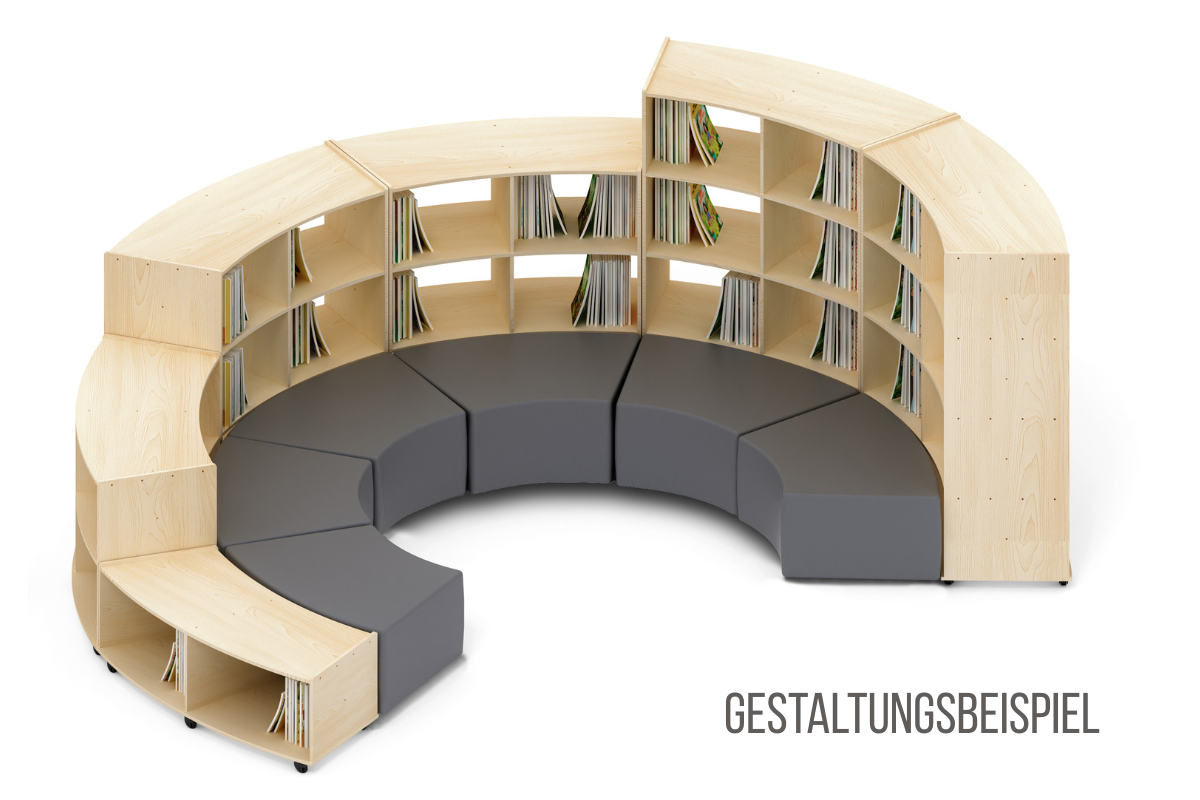 Mobiles Viertelkreis-Regal mit Rollen, 2 Fächer