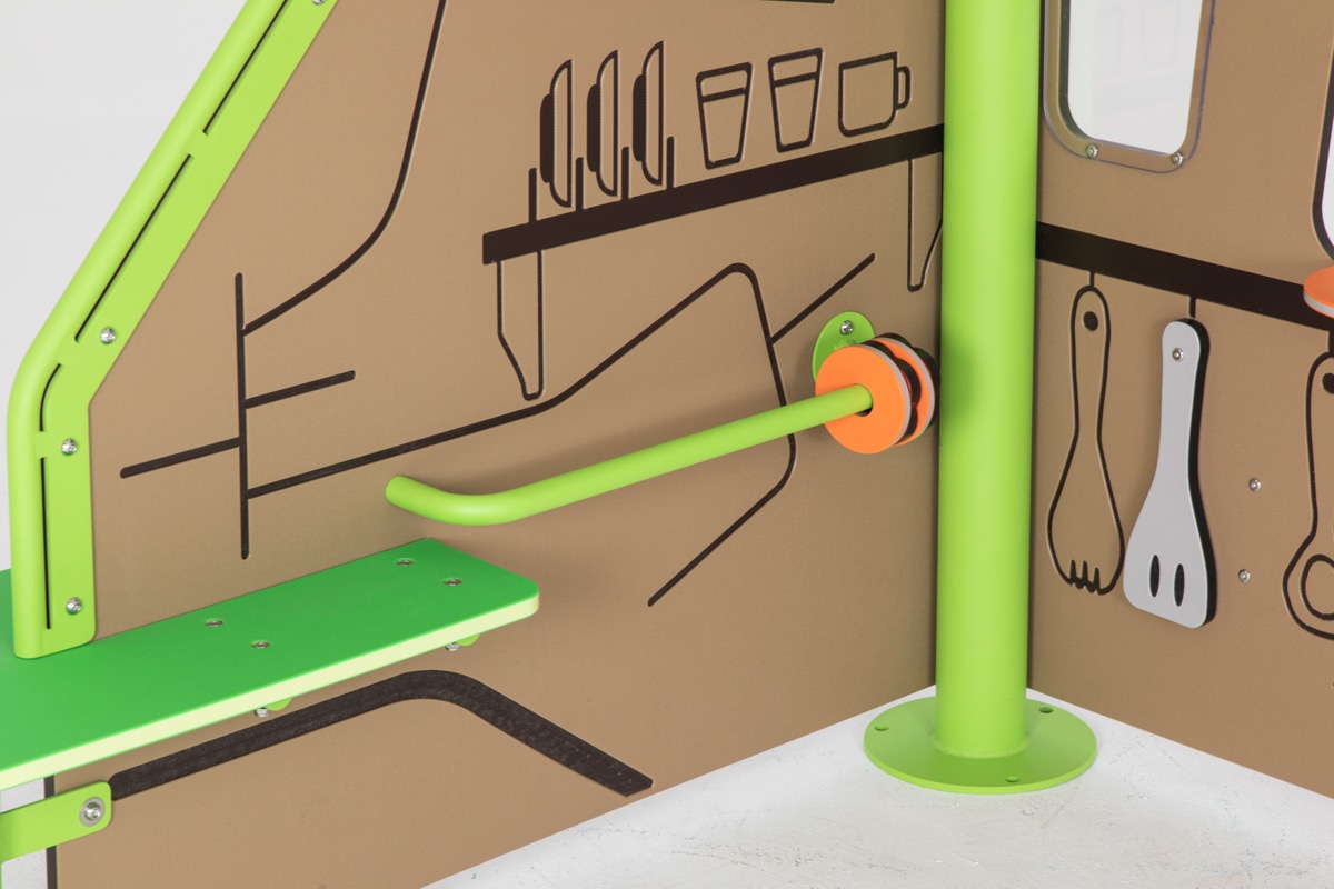 Kreativität fördern und soziale Kompetenzen stärken: Unser farbenfroher Outdoor-Imbiss ist der ideale Treffpunkt für kleine Köche und Gäste auf jedem Kita-Spielplatz.