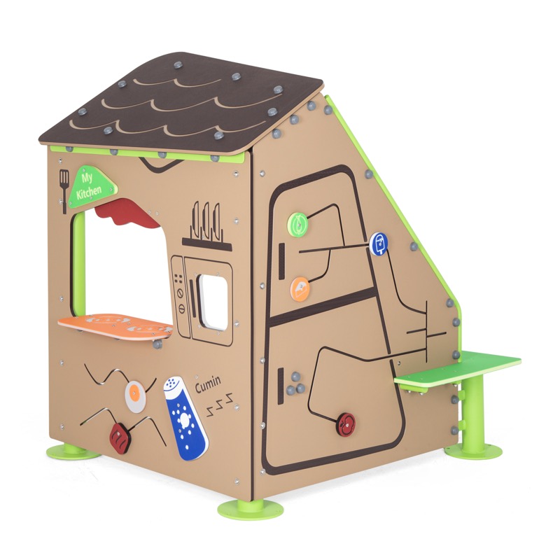Dieser charmante Verkaufsstand wurde speziell für den intensiven Einsatz in Kindertagesstätten entwickelt. Er bietet Kindern einen geschützten Raum für fantasievolle Rollenspiele, fördert die Interaktion und wird dank seines einladenden Designs schnell zum Mittelpunkt des Spielgeschehens im Außenbereich.