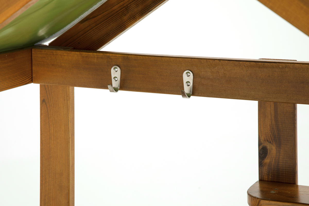 - Dekoratives Stoffdach: Der wetterfeste Textil-Baldachin dient als optisches Highlight über der Spielstation.