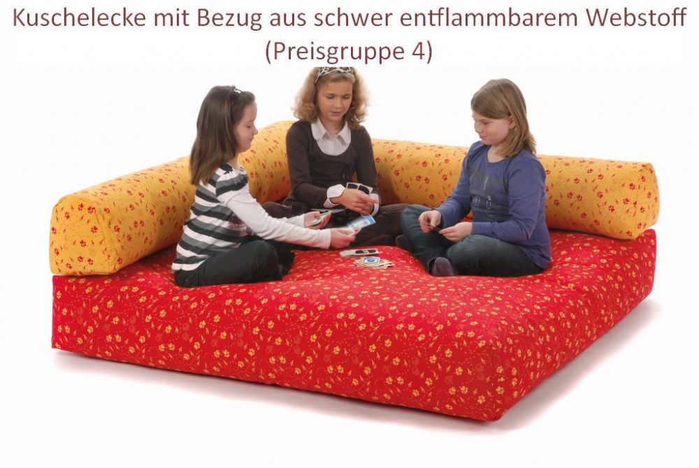 Die Bodenpolster der Kuschelecken haben ein Hohlkammer-Inlett, ähnlich wie bei einer Luftmatratze. Diese Hohlkammern sind mit einer Mischung aus Schaumstoffstäbchen-Flocken und Trevira-Hohlfaser befüllt. Dadurch wird ein hoher Sitzkomfort bei gleichbleibender Form erreicht, da die Füllung in den Kammern nicht verrutschen kann.