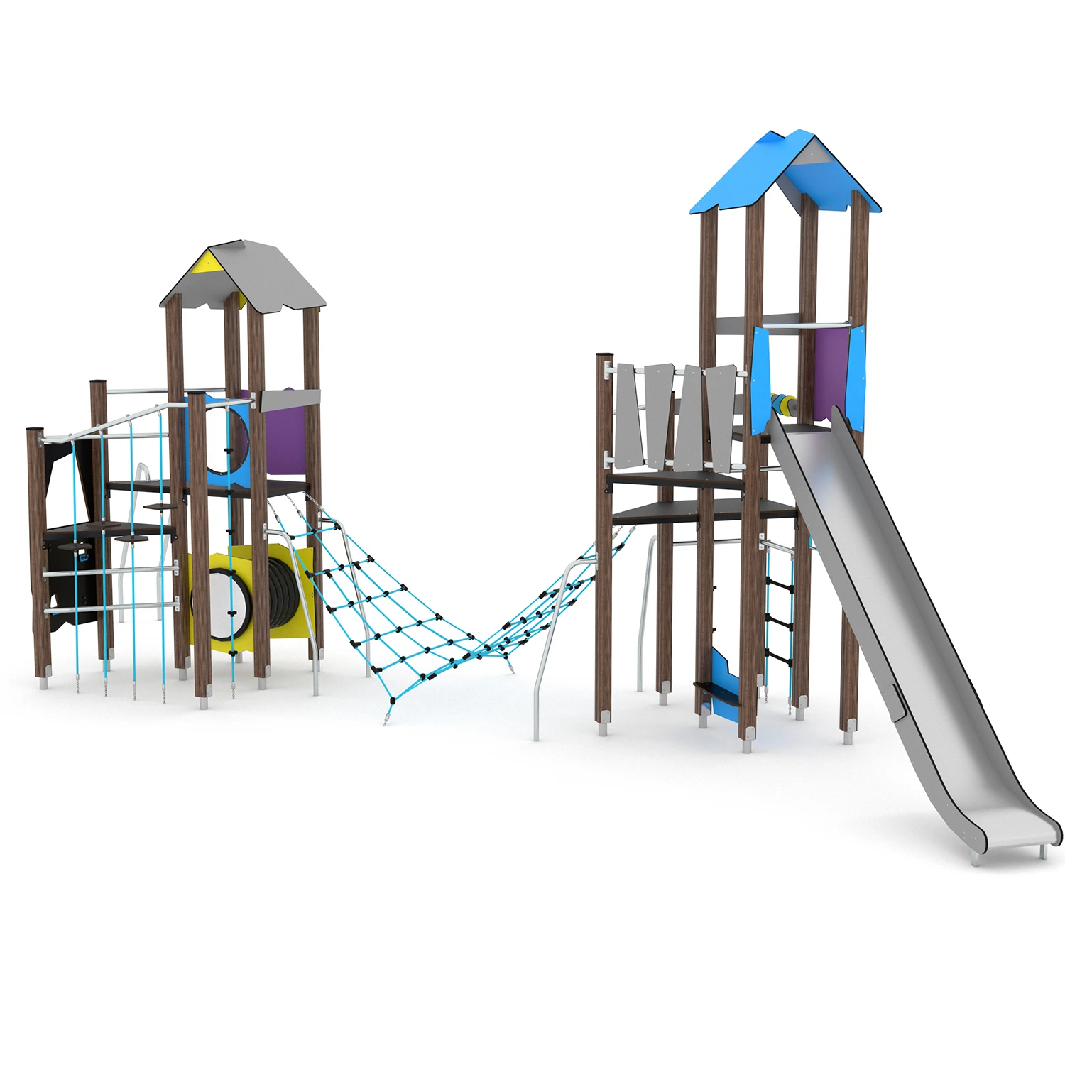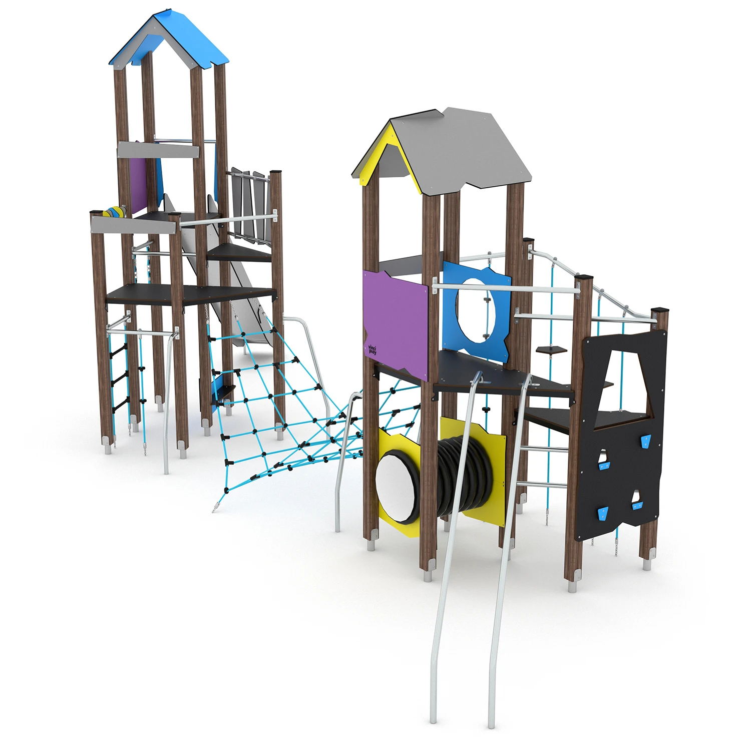 Diese Spielanlage bietet jede Menge Möglichkeiten die Geschicklichkeit und die körperliche Entwicklung zu fördern. Zwei Spieltürme sind mit einem Kletternetz verbunden und damit viele spannende Ketterstunden garantiert!
