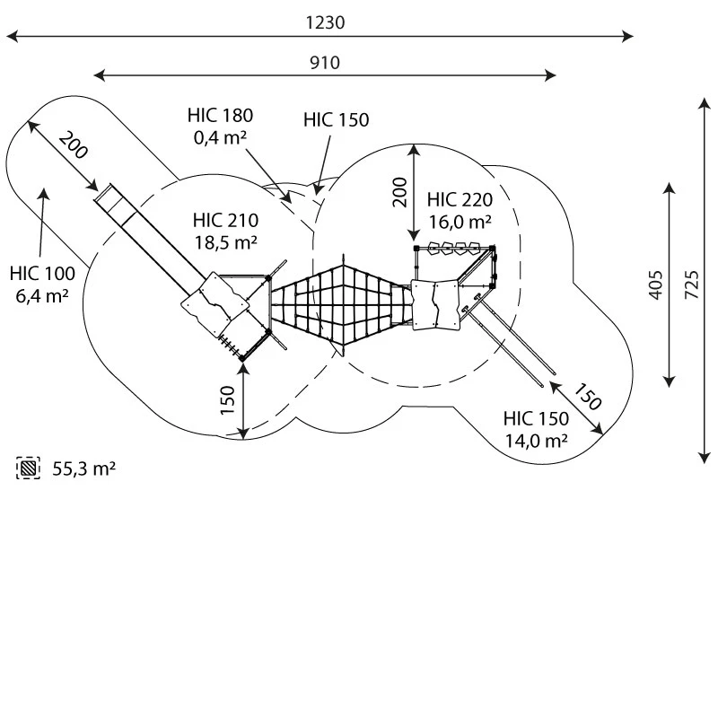 - Sicherheitsbereich: 55,3 m²