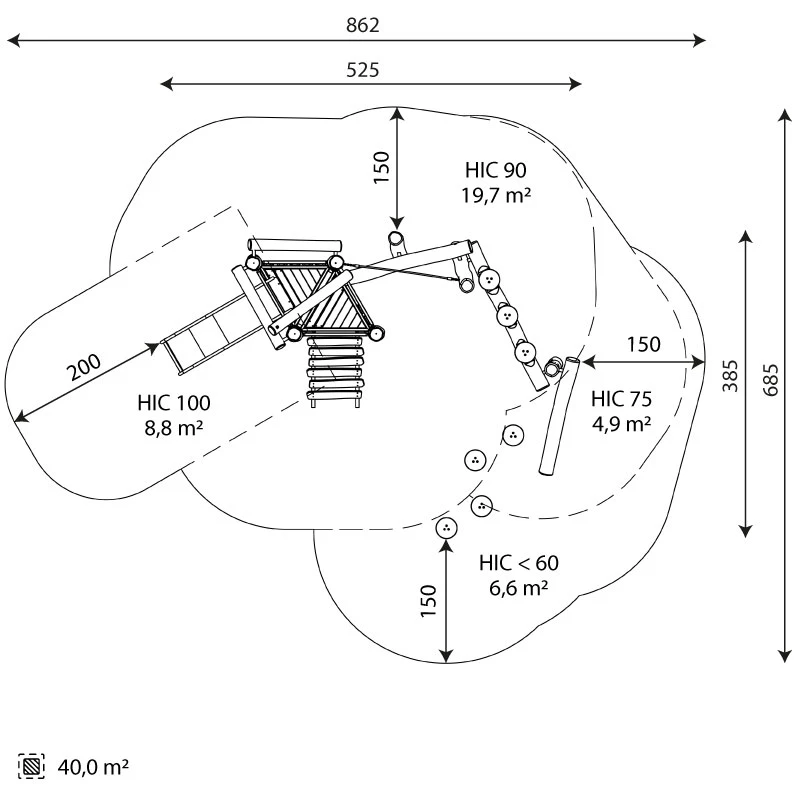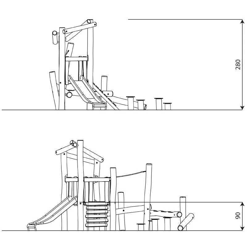 Konstruktion aus Robinie - sehr haltbares Akazienholz mit einem Durchmesser von ~ 18 cm ohne scharfe Kanten, witterungsbeständig