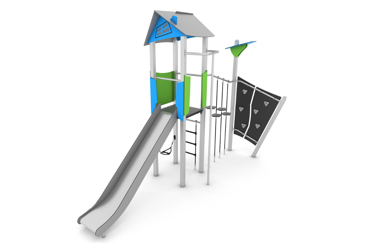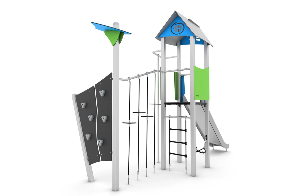 Die STEEL + -Serie umfasst moderne Turmstrukturen mit vielen Merkmalen, die sowohl jüngere als auch ältere Kinder begeistern werden. Bunte Türme, angereichert mit musikalischen Elementen, sind einfach der perfekte Ort, um Spaß mit anderen Kindern zu haben, und ein großartiger Ort zum Entspannen. Eine Vielzahl von Geräten mit Lernelementen erleichtert die Integration von Kindern unterschiedlicher Fitnessstufen.