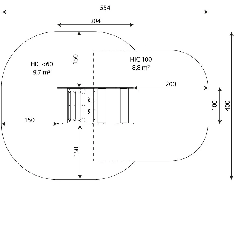 - Sicherheitsbereich: 18,5 m²