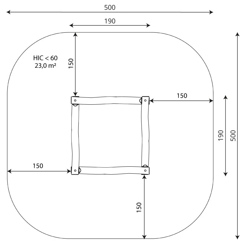 Konstruktion aus Robinie - sehr haltbares Akazienholz mit einem Durchmesser von ~ 18 cm ohne scharfe Kanten, witterungsbeständig