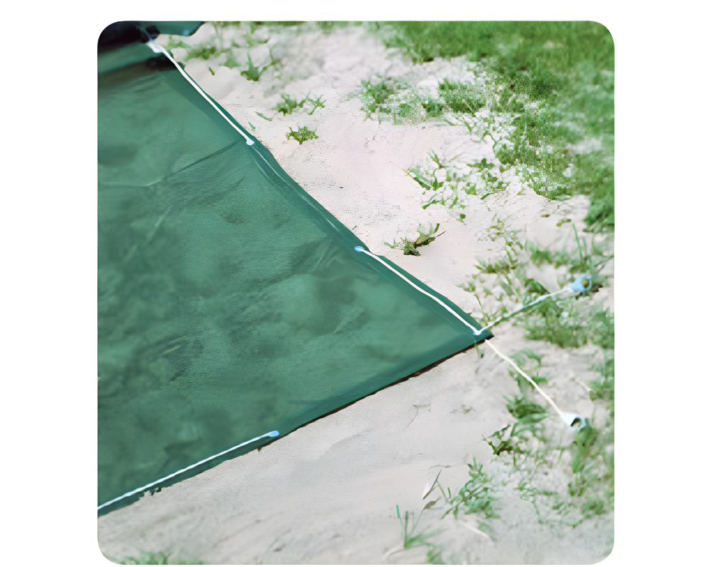 Hält Schmutz fern und lässt den Sand atmen. Stabiles Netzgittergewebe, ringsum gesäumt und mit Metallösen zum Abspannen versehen.