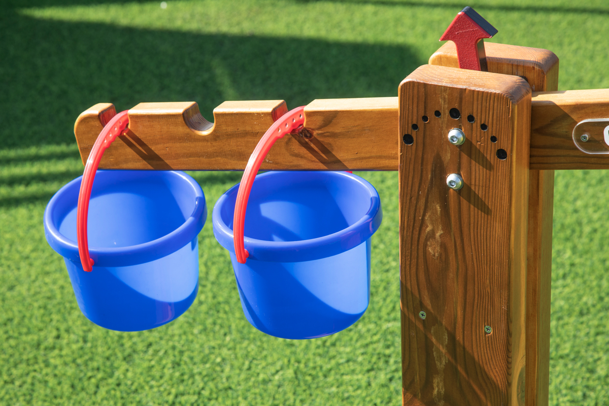 Outdoor Sandspiel-Waage aus Massivholz – Inklusive 3 Spieleimern