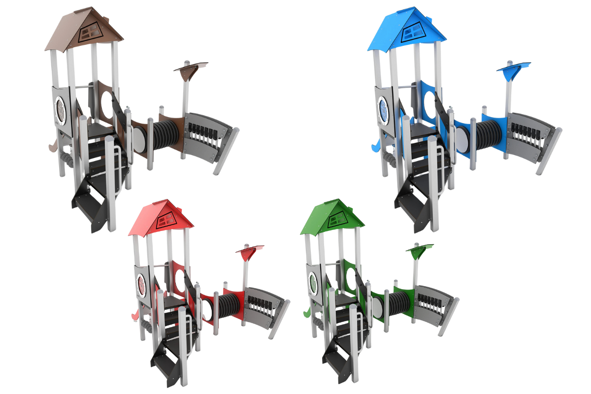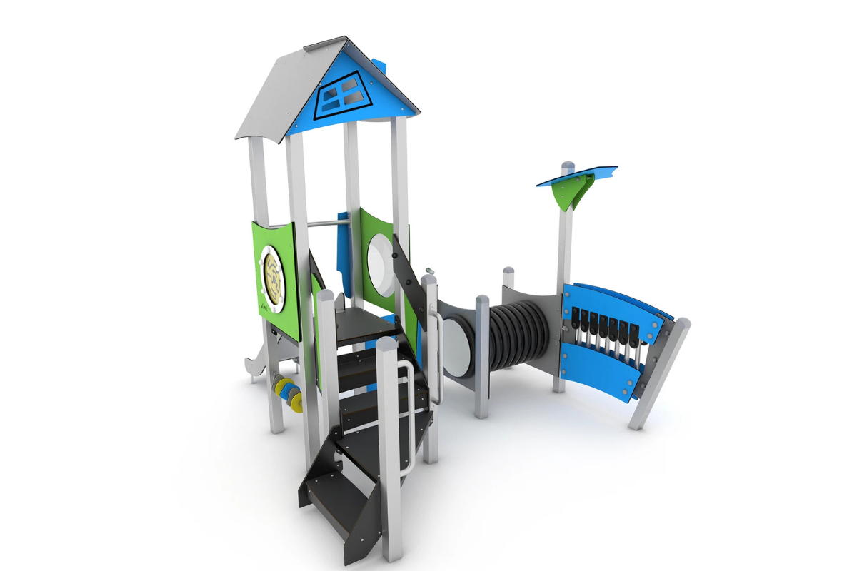 Die STEEL + -Serie umfasst moderne Turmstrukturen mit vielen Merkmalen, die sowohl jüngere als auch ältere Kinder begeistern werden. Bunte Türme, angereichert mit musikalischen Elementen, sind einfach der perfekte Ort, um Spaß mit anderen Kindern zu haben, und ein großartiger Ort zum Entspannen. Eine Vielzahl von Geräten mit Lernelementen erleichtert die Integration von Kindern unterschiedlicher Fitnessstufen.