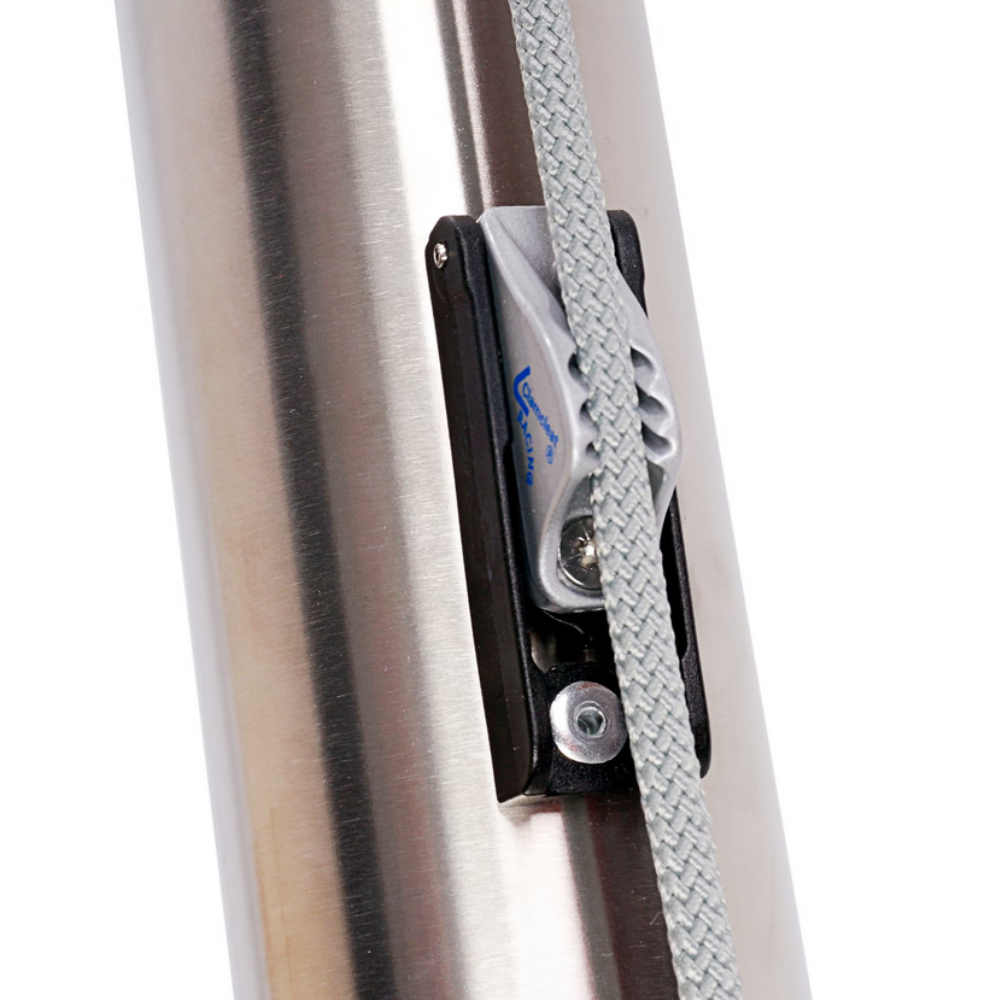 Der Mast selbst hat einen Durchmesser von 70 Millimetern, eine drei Millimeter starke Wandung und besteht aus hochwertigem, rostfreiem Edelstahl. Für seine Hauptfunktion, die Befestigung des Sonnensegels, verfügt der Mast über ein vollständiges Befestigungsset. Alle Teile der Höhenverstellung und des Befestigungsmaterials bestehen aus hochwertigem V2A-Edelstahl oder eloxiertem Aluminium. Diese Teile halten für viele Jahre Wind und Wetter stand und überzeugen durch Pflegeleichtigkeit.