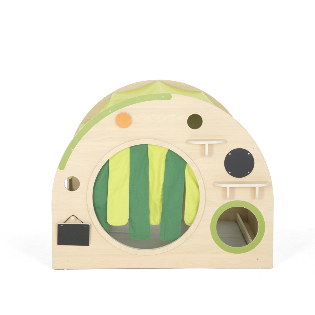 Mal ist sie eine geheime Höhle, mal eine Kuschelecke oder ein kleiner Abenteuerplatz - der Fanatsie sind keine Grenzen gesetzt. Stabile Holzelemente in Ahorn- Optik, farbige Stoffbahnen und weiche Polster machen sie zu einem besonderen Ort, an dem Kinder spielen und träumen und sich geborgen fühlen. Ein Highlight im Gruppenraum, das kreativität und Ruhe gleichermaßen ermöglicht.