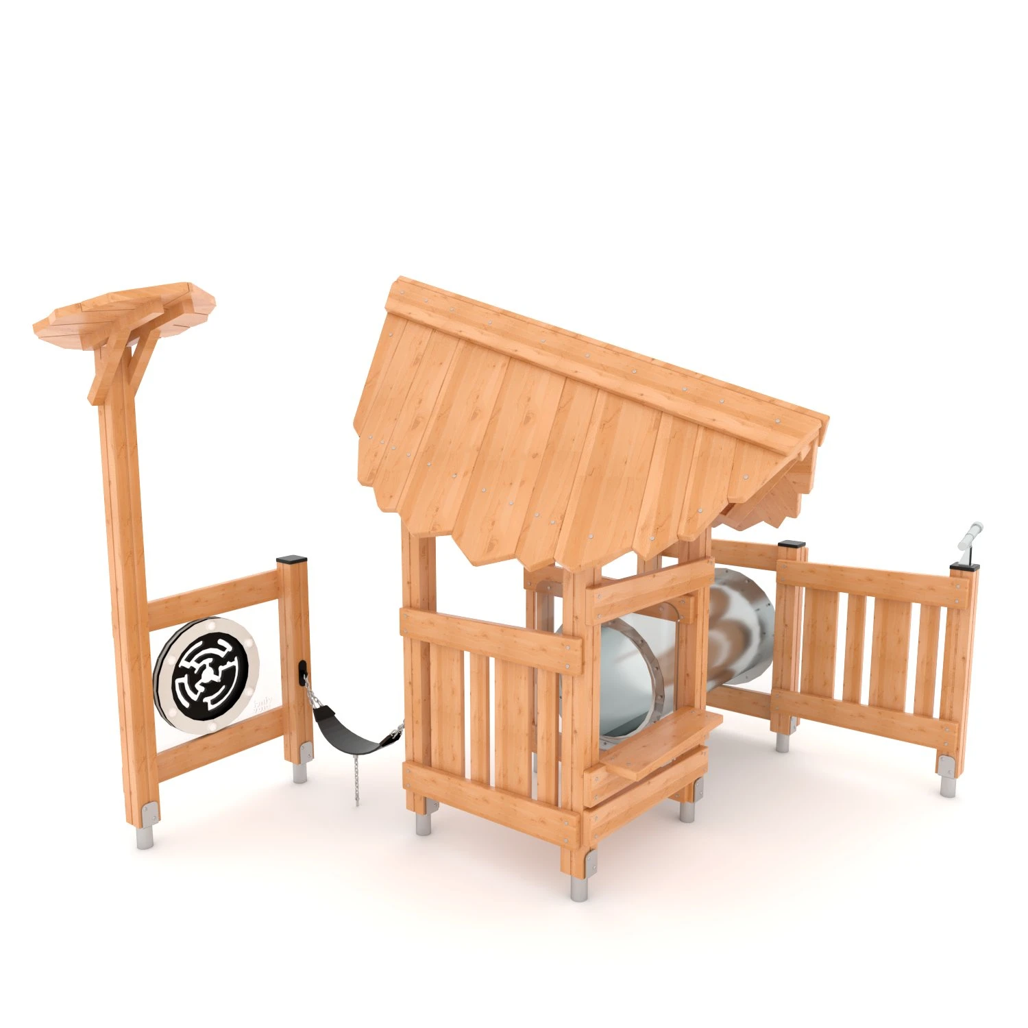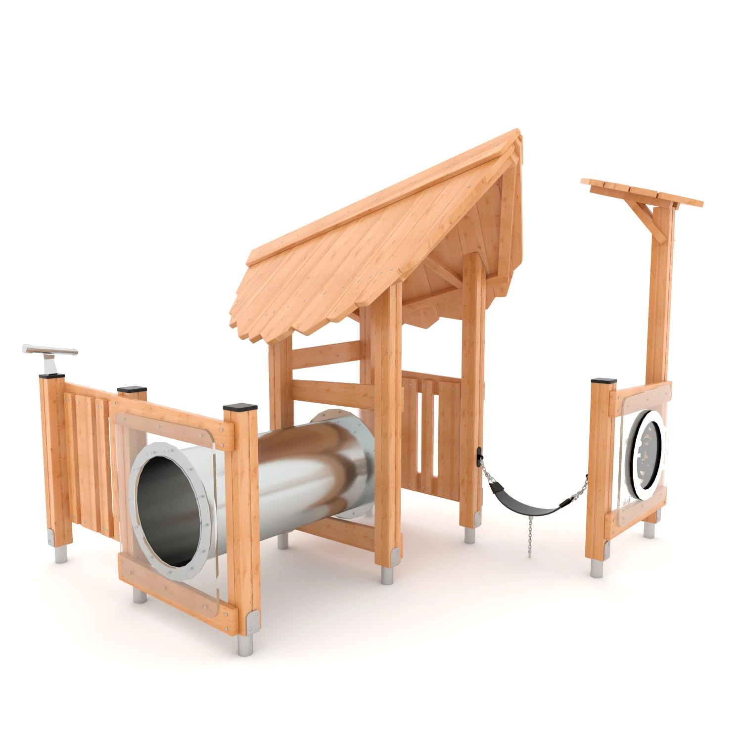 Die Naturo-Serie vereint naturbelassenes Holz mit einer schützenden Lackierung in sanften Farbtönen – für eine harmonische Verbindung von Natürlichkeit und Stil. Rutschen, Seilbrücken, stabile Podeste sowie vielfältige, liebevoll gestaltete Aktivitätselemente erhöhen den Spielwert.