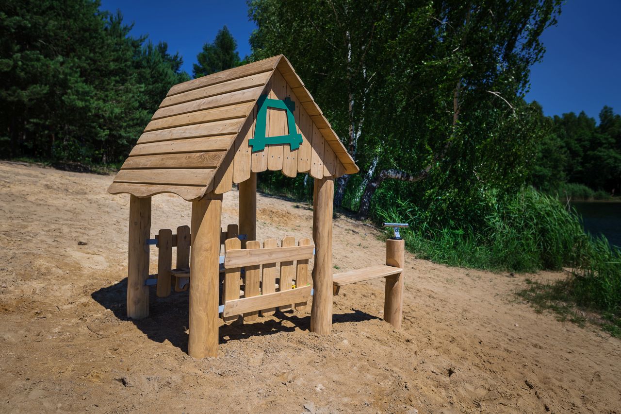 Konstruktion aus Robinie - sehr haltbares Akazienholz mit einem Durchmesser von~ 18 cm ohne scharfe Kanten, witterungsbeständig