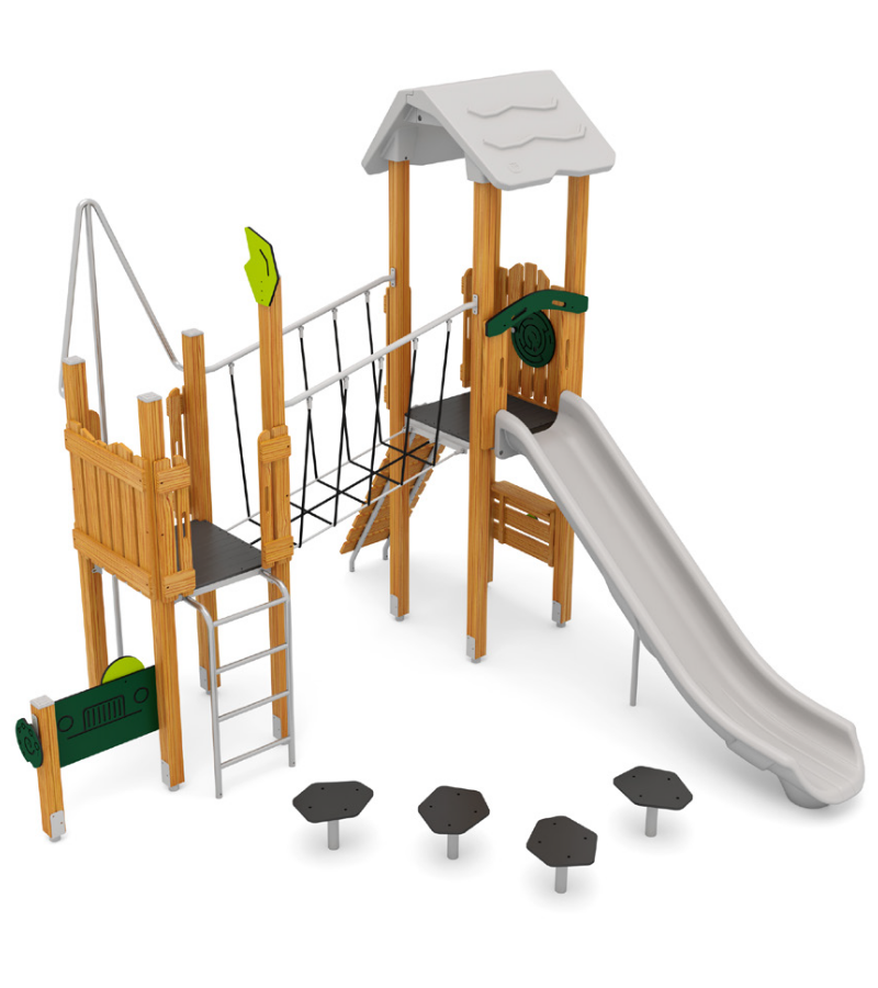 Aus skandinavischem Kiefernholz gefertigt, welches sich wunderbar in die Umgebung einfügt und dieser einen natürlichen Touch verleiht. Eine natürliche und sichere Umgebung fördert das Interesse und die Freude der Kinder am Spiel. Die Massivholz-Serie umfasst verschiedene Kriech-, Kletter- und Rutschoptionen in unterschiedlichen Höhen. Diese Vielzahl an Aktivitäten fördert die motorischen Fähigkeiten und motiviert die Kinder, gemeinsam an einem fröhlichen und sicheren Ort zu spielen. Eine ansprechende Spiellandschaft, die die körperliche, soziale und kognitive Entwicklung von Kindern fördert.