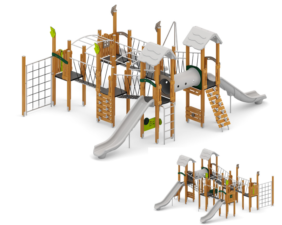 Aus skandinavischem Kiefernholz gefertigt, welches sich wunderbar in die Umgebung einfügt und dieser einen natürlichen Touch verleiht. Eine natürliche und sichere Umgebung fördert das Interesse und die Freude der Kinder am Spiel. Die Massivholz-Serie umfasst verschiedene Kriech-, Kletter- und Rutschoptionen in unterschiedlichen Höhen. Diese Vielzahl an Aktivitäten fördert die motorischen Fähigkeiten und motiviert die Kinder, gemeinsam an einem fröhlichen und sicheren Ort zu spielen. Eine ansprechende Spiellandschaft, die die körperliche, soziale und kognitive Entwicklung von Kindern fördert.