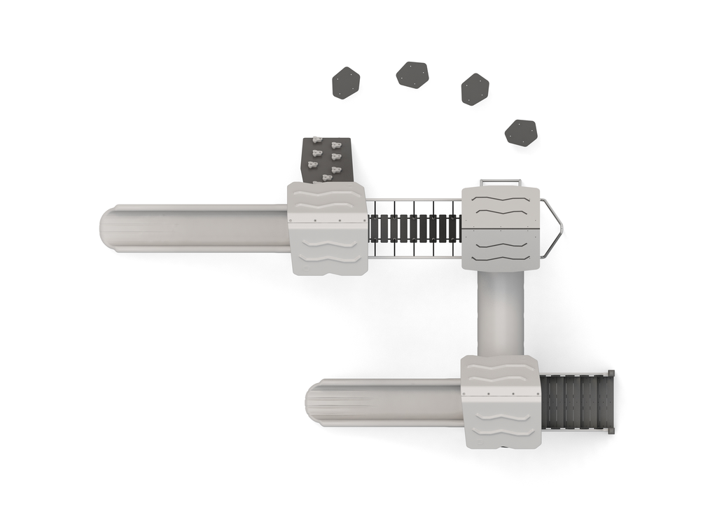 Sämtliche Pfosten sind mit Einsätzen aus Edelstahl 420 versehen, die eine schnelle und einfache Montage von Komponenten wie Rutschen, Spielwänden oder Kletterelementen ermöglichen.