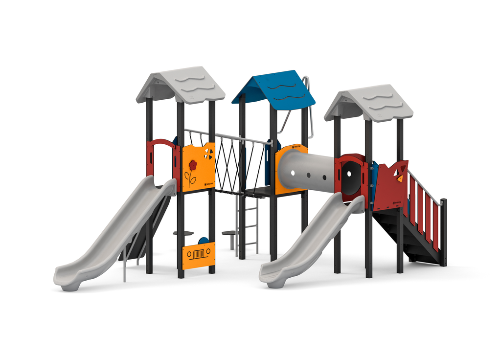 Wisdom Spielplatzgeräte aus Stahl sind, je nach Modell, für Kinder von 1 bis 12 Jahren geeignet. Die Produktpalette umfasst unterschiedlich hohe Spielgeräte mit verschiedensten Kletter-, Krabbel- und Rutschoptionen. Diese Vielfalt an Aktivitäten und Spielmöglichkeiten fördert die motorischen Fähigkeiten und motiviert zum gemeinsamen Spielen in einer fantastischen und sicheren Spielumgebung. Gleichzeitig wird die körperliche, soziale und kognitive Entwicklung gefördert.