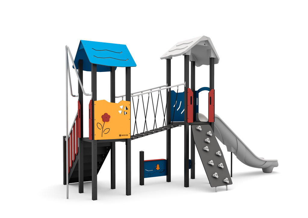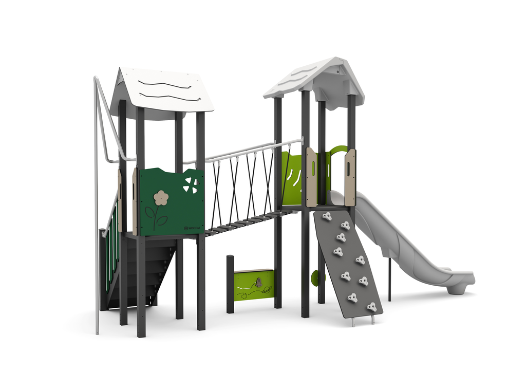 Wisdom Spielplatzgeräte aus Stahl sind, je nach Modell, für Kinder von 1 bis 12 Jahren geeignet. Die Produktpalette umfasst unterschiedlich hohe Spielgeräte mit verschiedensten Kletter-, Krabbel- und Rutschoptionen. Diese Vielfalt an Aktivitäten und Spielmöglichkeiten fördert die motorischen Fähigkeiten und motiviert zum gemeinsamen Spielen in einer fantastischen und sicheren Spielumgebung. Gleichzeitig wird die körperliche, soziale und kognitive Entwicklung gefördert.